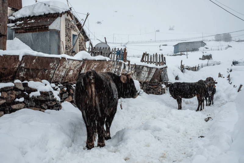 All working and fattening animals are neutered, only a few remain for breeding. Cattle epidemics occur in Svaneti. On the upper pastures, the attack of bears and wolves on the herds is very much feared.