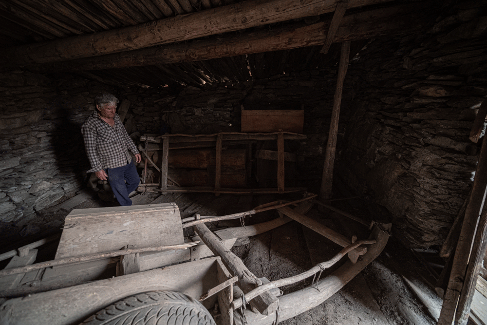 In Svaneti, there is no alpine farming in our sense of the word, i.e. no real alpine huts with regular summer operation. Only at some places, you can find a makeshift shepherd’s hut made of stones or tree branches, rarely a permanent log cabin.