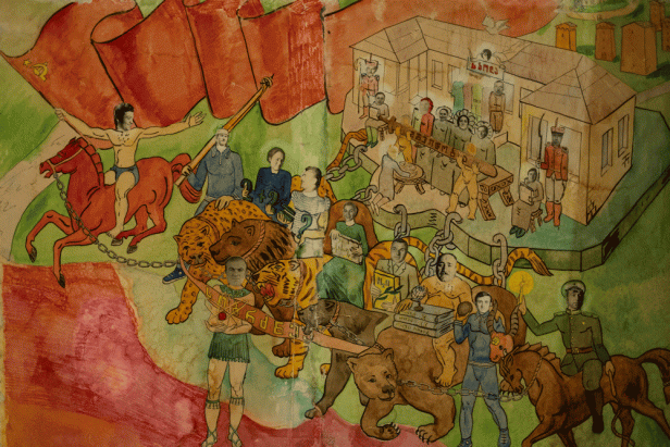 The violence which then happened to him shaped his whole life. His pictorial work has an enormous contemporary significance: equally against the background of a rapidly advancing tourist transformation of the mountainous Georgian region, as well as against the current attempts of the Russian president to reinterpret Stalinism.
