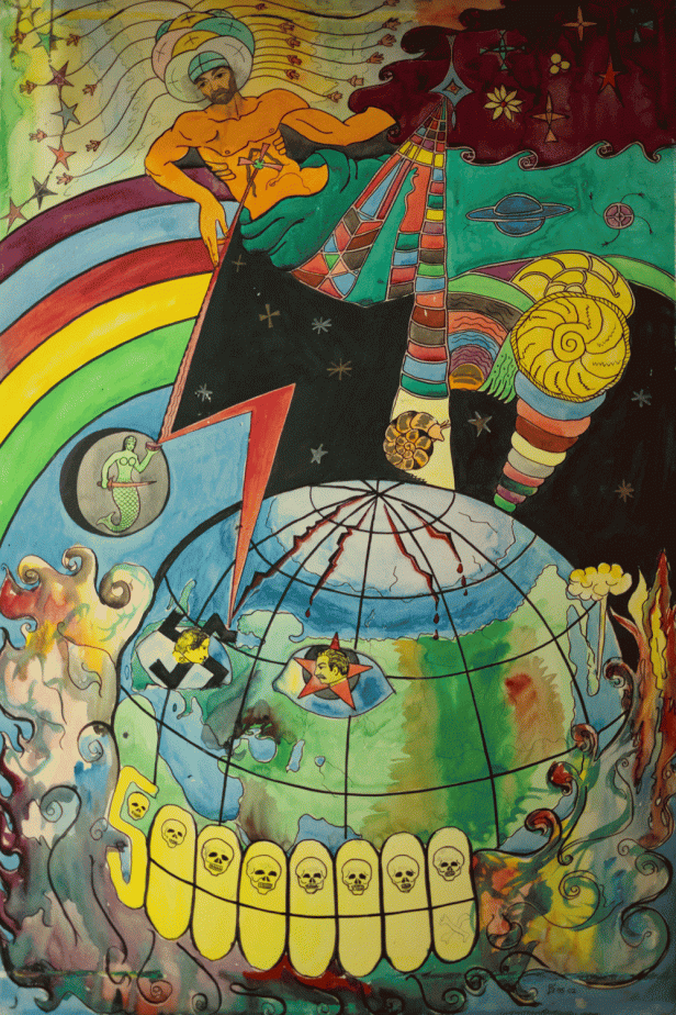 The path of Homo Sapiens is a path of bones. It ends in a rocket that unleashes a mushroom cloud that will destroy the world. At its end is the cross. The Georgian archangel wears a swan cap and looks stunned at the world in which Hitler and Stalin rage.