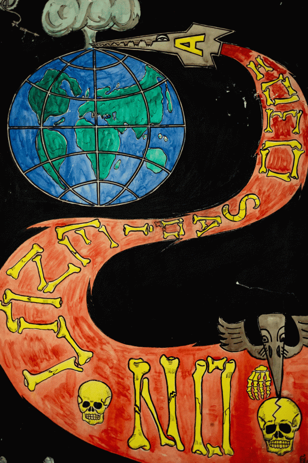 ‘We used to sell some paintings to tourists at $10 apiece. We don’t do that anymore. We keep all his paintings with us’.
