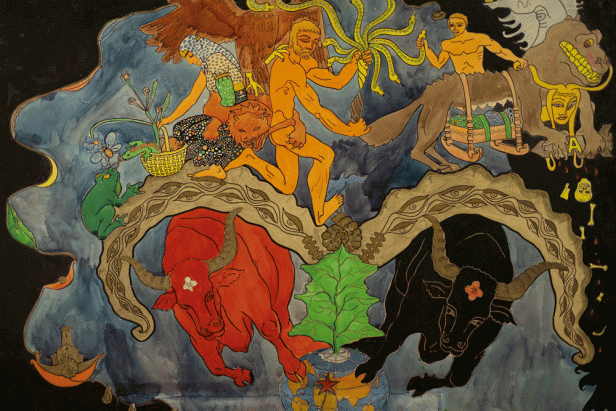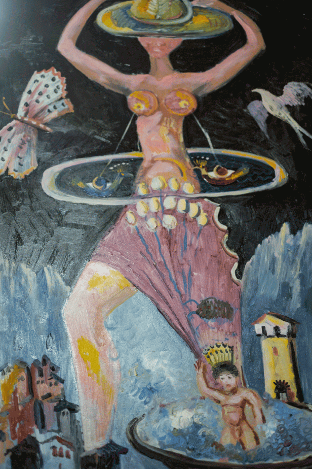 This sudden emergence of modernity in Svaneti enabled him to study painting at the Academy of Fine Arts in Tbilisi. He brought a Svaneti with him which was characterized by traditional values and a great attachment to nature. He carried this Svaneti with him in his whole body, in his entire being. In Tbilisi, he met the expectations of socialist realism, which he contrasted with his Svan love of nature and its mythical roots. The artist then began to detach himself from the promises of Soviet modernity when he first began to understand and then denounce Stalin’s crimes.